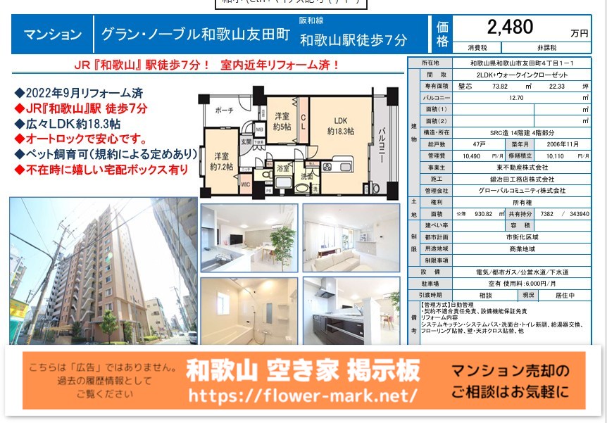 和歌山市のマンション売却相談無料。LINE、Xにてご相談いただけます。NFT