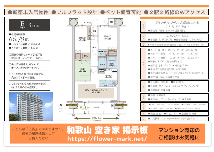 住所 〒640-8107 和歌山県和歌山市三木町堀詰25 交通 JR阪和線 和歌山駅 徒歩18分 築年月 2020年4月 …