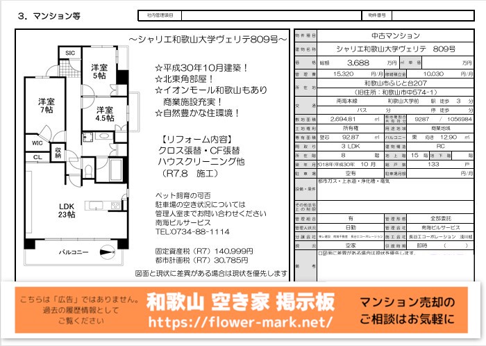 不動産ポータルサイトでの現在および過去の募集履歴です。