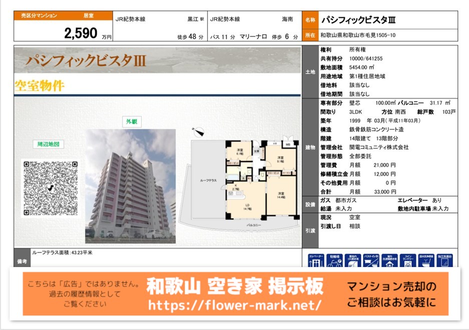 不動産ポータルサイトでの現在および過去の募集履歴です。