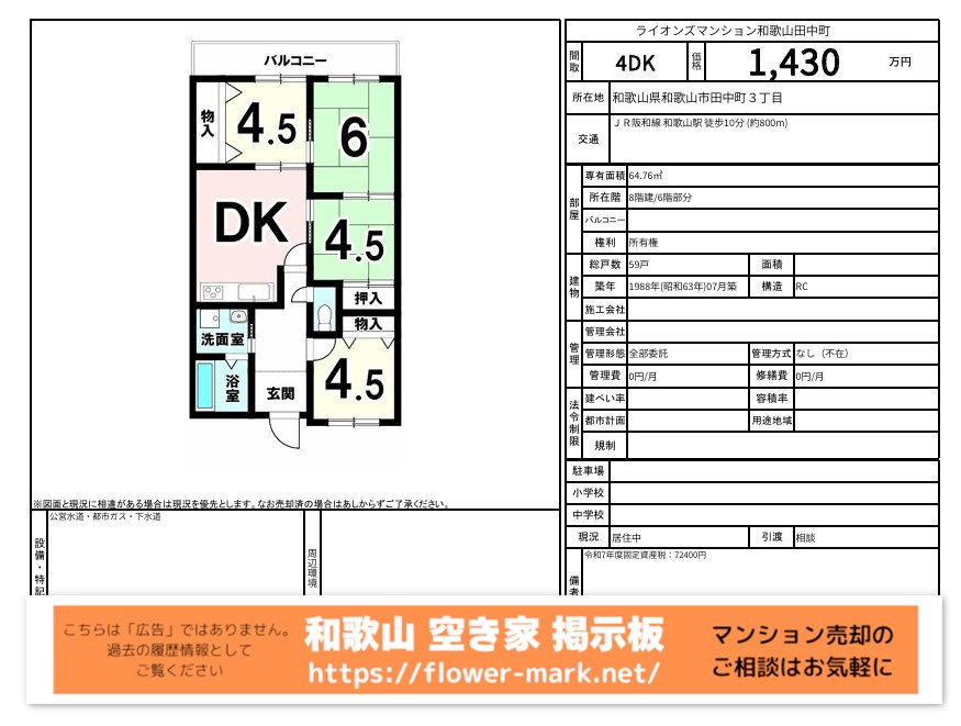 現在の情報が知りたい場合や、売却、賃貸管理相談・査定依頼などはお問い合わせください。