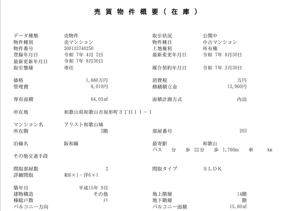 | 2025-08-30 | 2F 64.03 | 2SLDK | 1,680 |