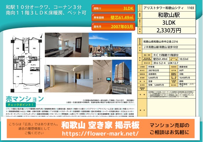 2025-08-30 | 11F 61.49 | 3LDK | 2,330 |