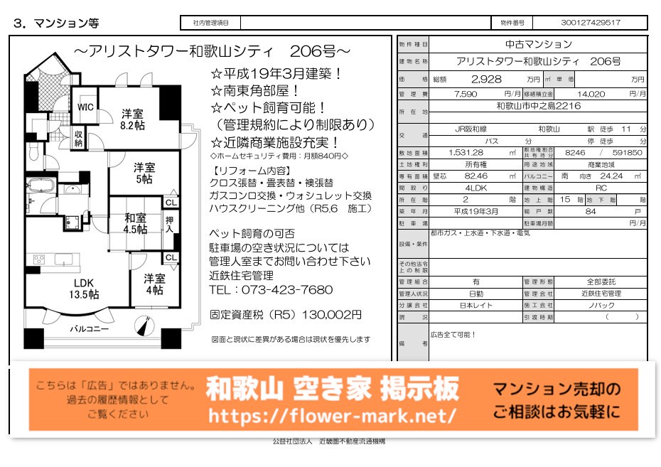 不動産ポータルサイトでの現在および過去の募集履歴です。
