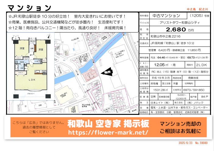 2025-06-23 | 12F 64.46 | 2LDK | 2,680 |