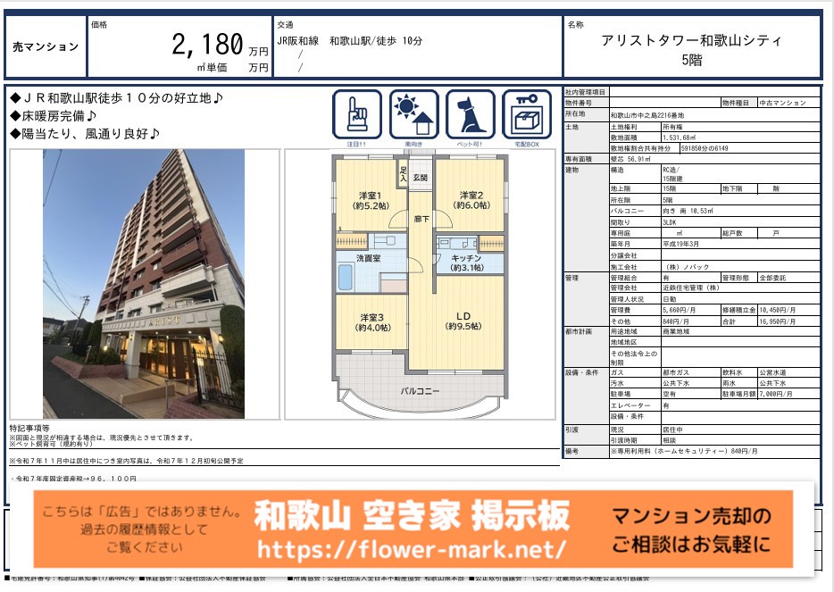 | 2025-11-16 | 5F 56.91 | 3LDK | 2,180 |