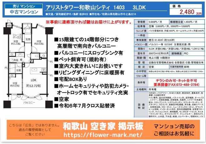 2025-05-18 | 14F 61.49 | 3LDK | 2,480 |