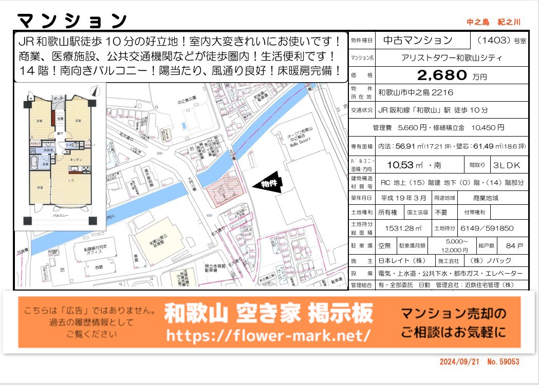 2025-03-21 | 14F 56.91 | 3LDK | 2,680 |