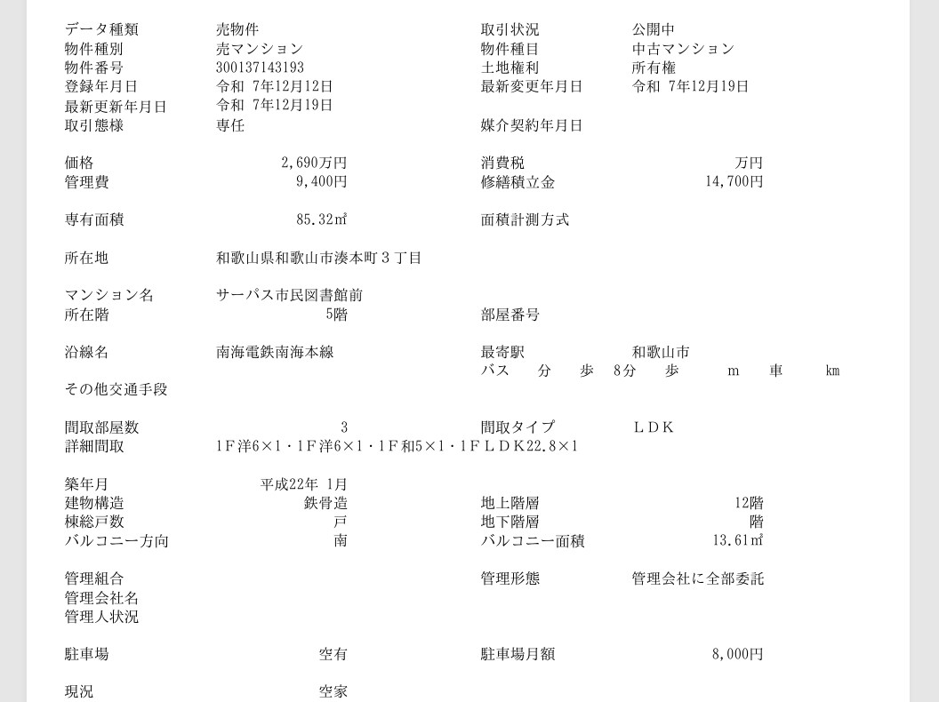 | 2025-12-19 | 5F 85.32 | 3LDK | 2,690 |