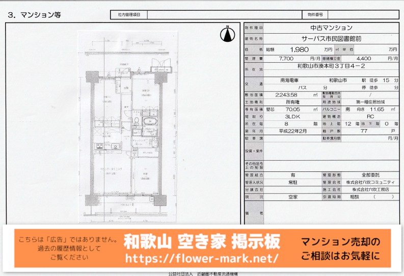 不動産ポータルサイトでの現在および過去の募集履歴です。