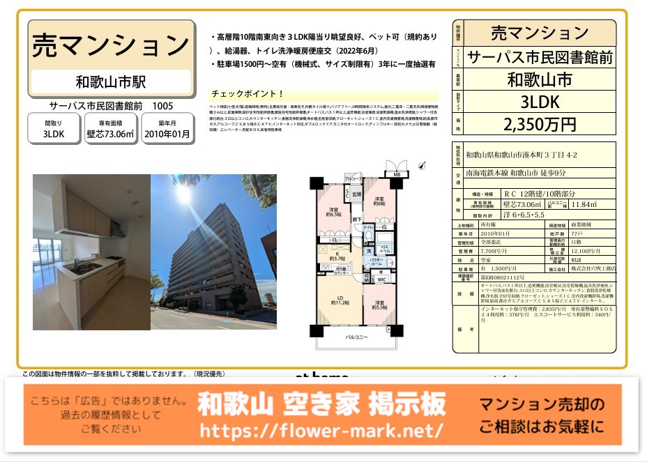 2025-08-02 | 10F 73.06 | 3LDK | 2,350 |