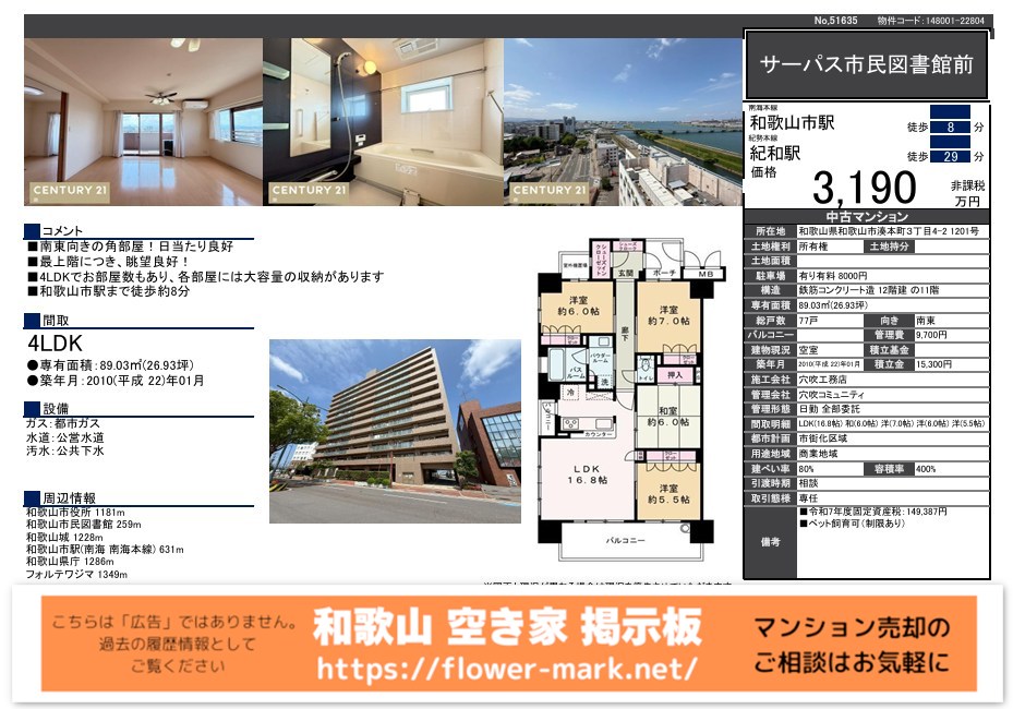 2025-06-06 | 12F 89.03 | 4LDK | 3,190 |