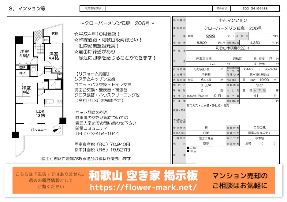 現在の情報が知りたい場合や、売却、賃貸管理相談・査定依頼などはお問い合わせください。