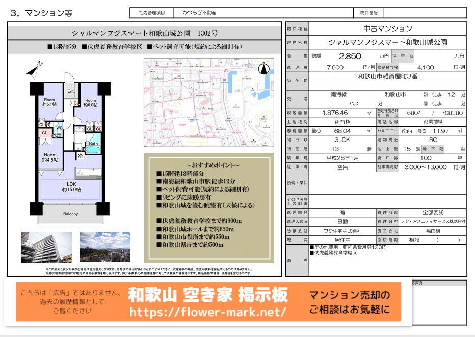 成約情報や、いま現在の募集状況(広告)ではございません。