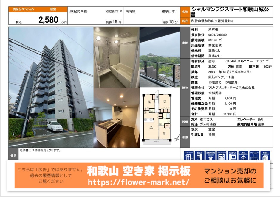 | 2025-12-06 | 15F 68.04 | 3LDK | 2,580 |