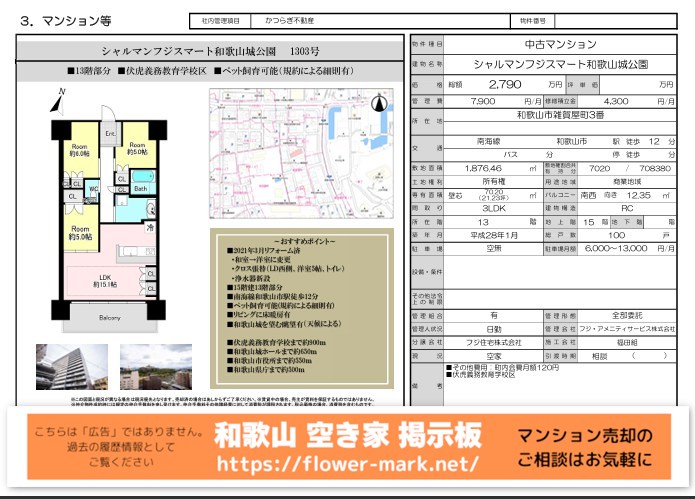 不動産ポータルサイトでの現在および過去の募集履歴です。