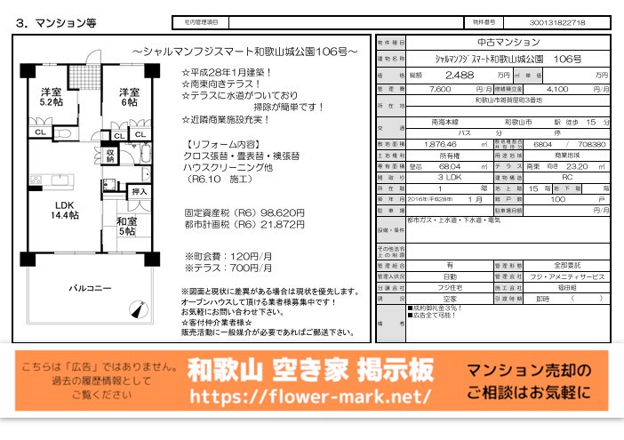 2024-05-16 | 5F 70.2 | 3LDK | 2,780 |