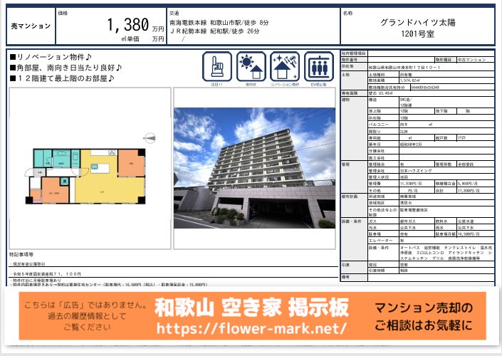 不動産ポータルサイトでの現在および過去の募集履歴です。