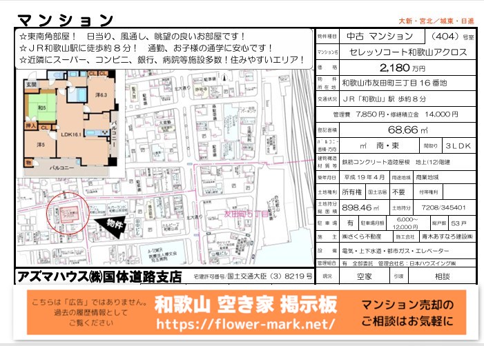 不動産ポータルサイトでの現在および過去の募集履歴です。