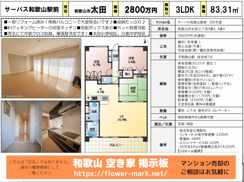 2025-02-07 | 2F 83.31 | 3LDK | 2,800 |
