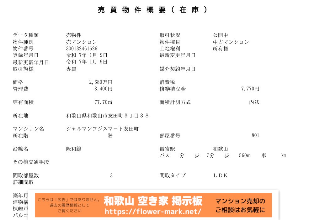 2025-01-09 | 77.7 | 3LDK | 2,680 |