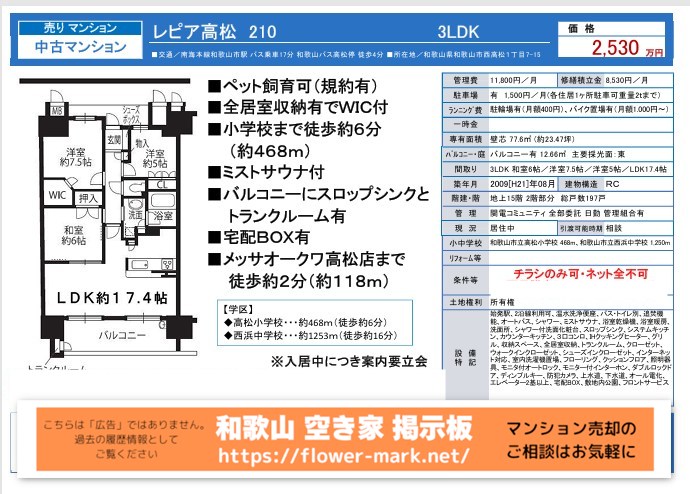 2025-09-15 | 2F 77.6 | 3LDK | 2,530 |