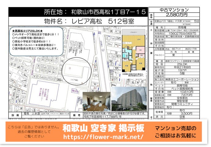 2025-07-19 | 5F 66.71 | 2SLDK | 2,580 |