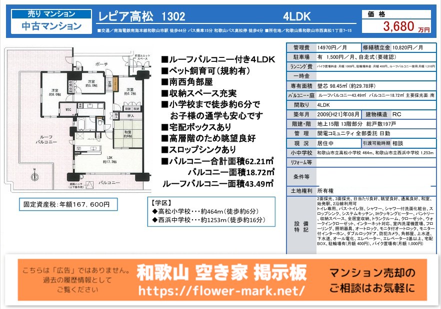 2025-08-04 | 13F 98.45 | 4LDK | 3,680 |