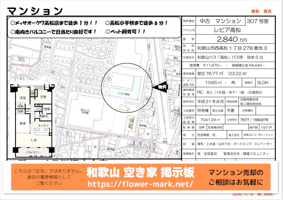 ・2024-12-13:8F 3LDK 77.6㎡ 330万円値下げ