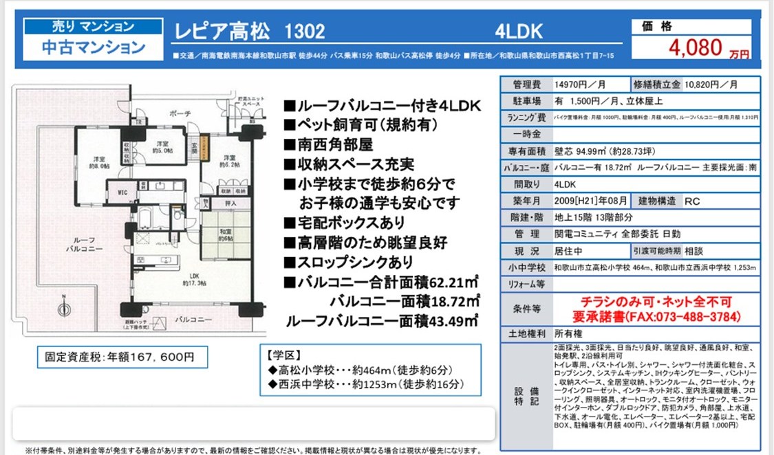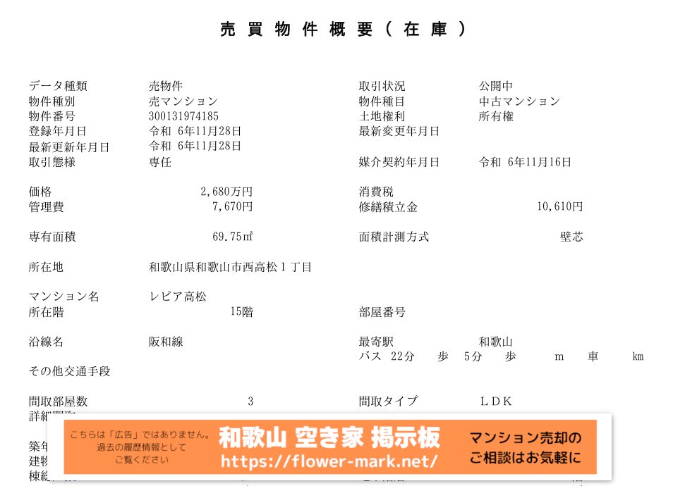 2024-11-26 | 13F 98.45 | 4LDK | 4,480 |