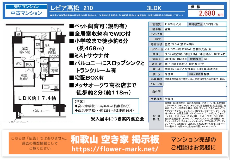 2025-06-16 | 2F 77.6 | 3LDK | 2,680 |