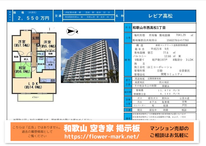 不動産ポータルサイトでの現在および過去の募集履歴です。