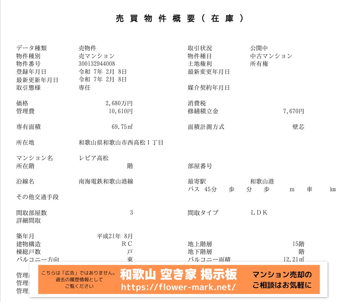 2025-02-08 | 69.72 | 3LDK | 2,680 |
