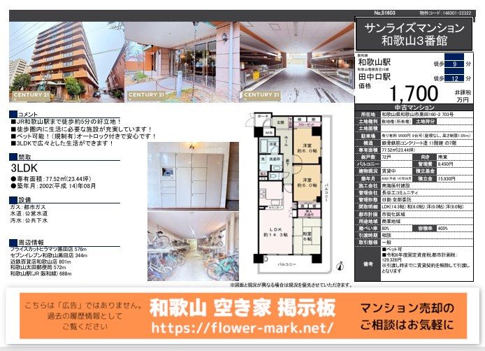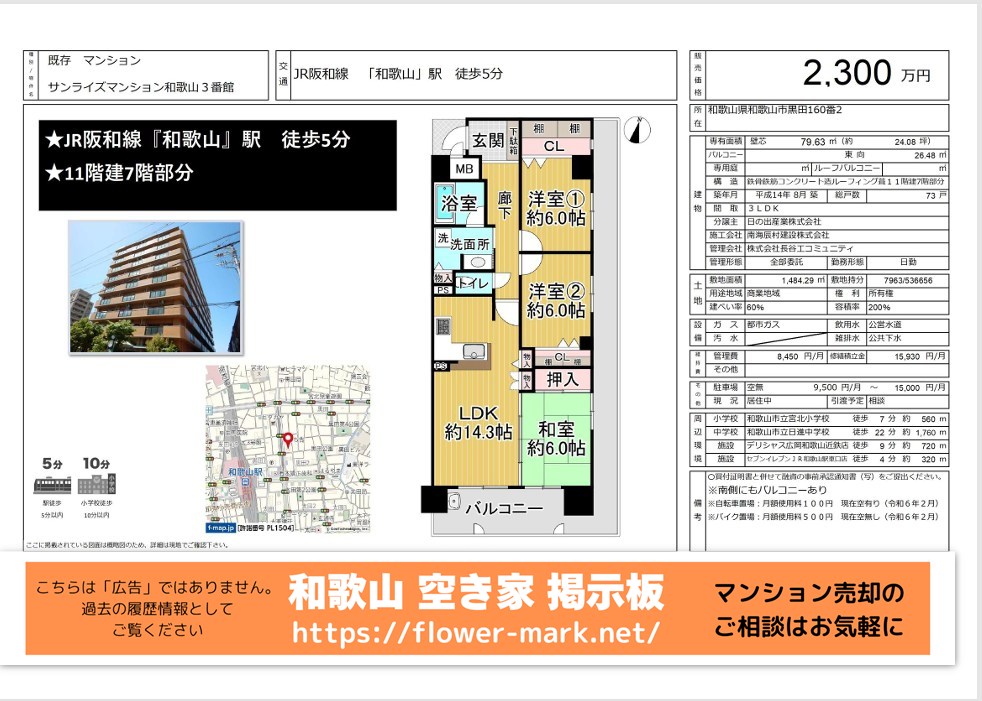 交通 | JR阪和線 和歌山駅 徒歩11分 |