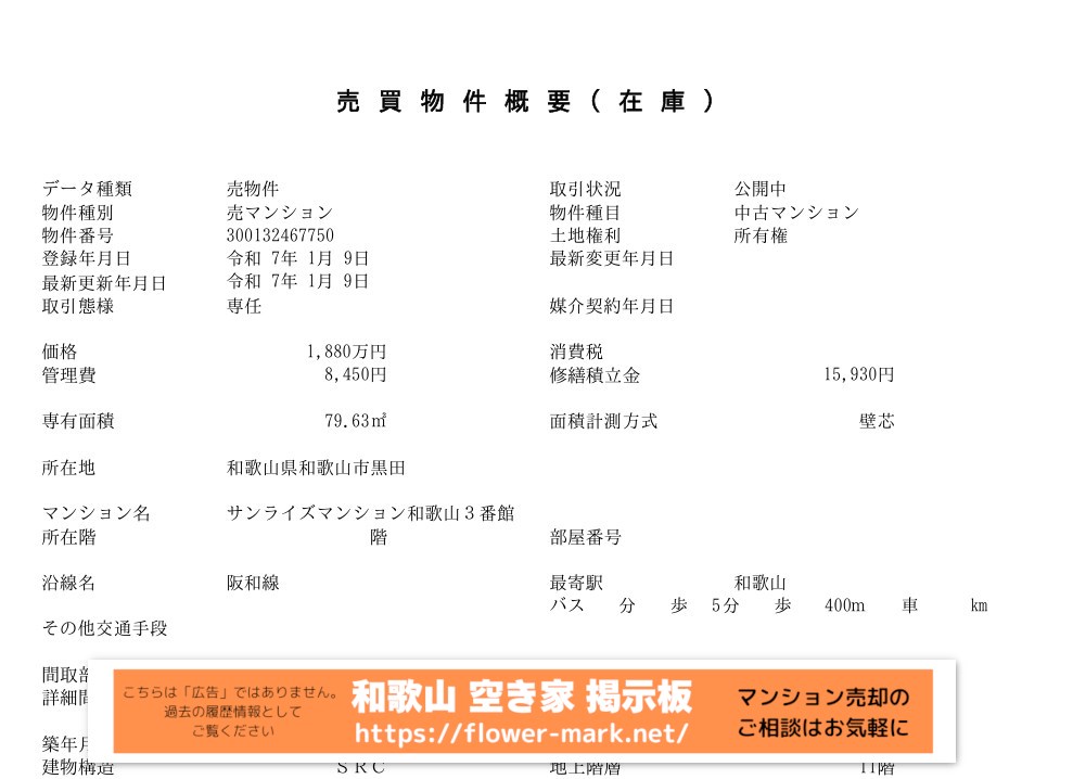 2025-01-09 | 79.63 | 3LDK | 1,880 |