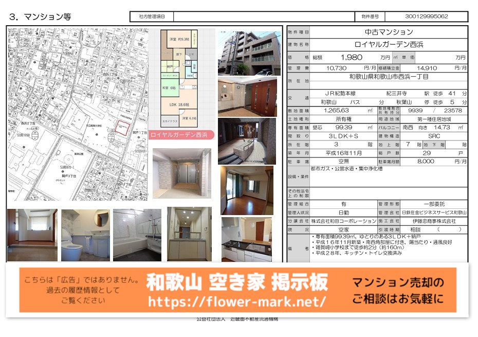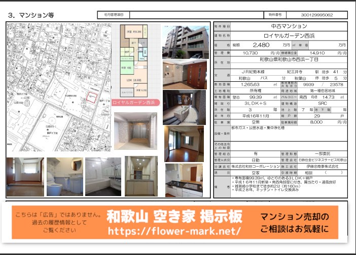 不動産ポータルサイトでの現在および過去の募集履歴です。