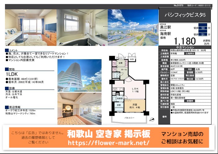 | 2024-12-23 | 5F 46.0 | 1LDK | 1,180 |