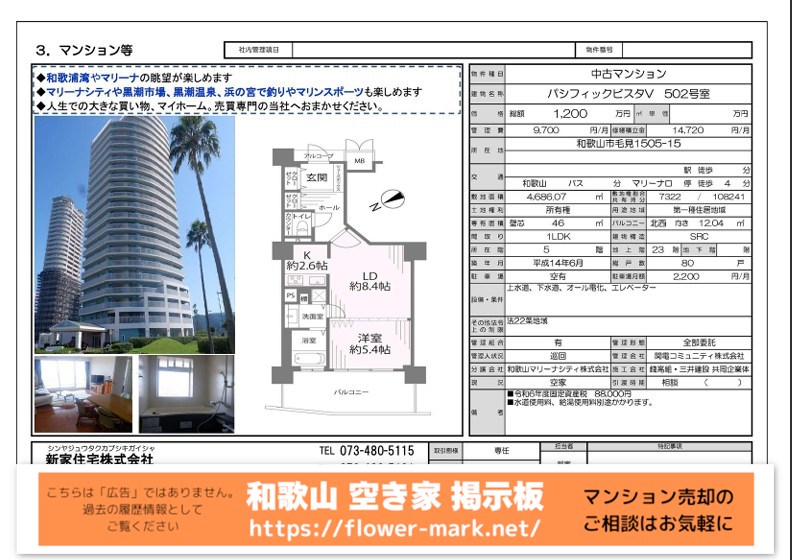 不動産ポータルサイトでの現在および過去の募集履歴です。
