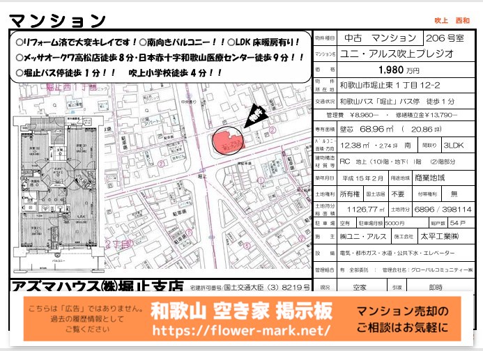 不動産ポータルサイトでの現在および過去の募集履歴です。