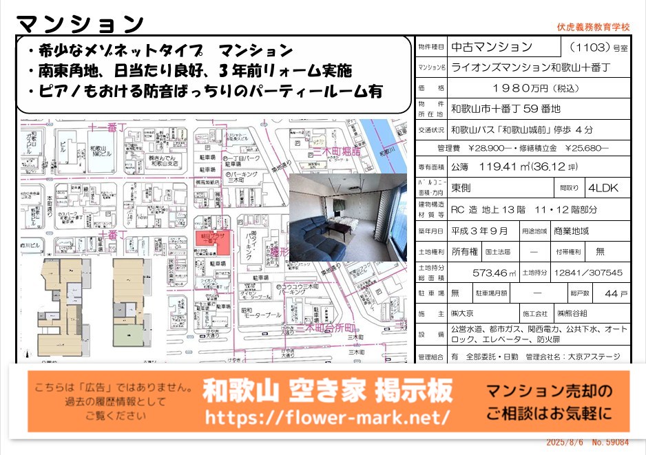 | 2025-08-07 | 11F 119.41 | 4LDK | 1,980 |