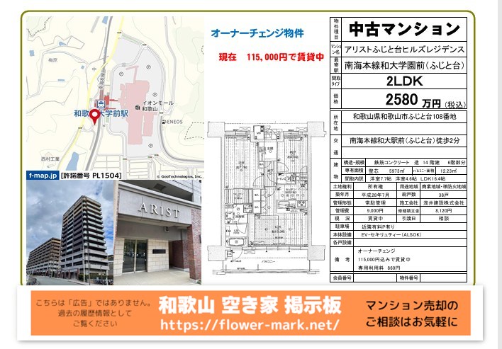 2024-03-31:売却物件 アリストふじと台ヒルズレジデンス13Fを追加しました。