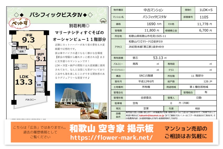 不動産ポータルサイトでの現在および過去の募集履歴です。