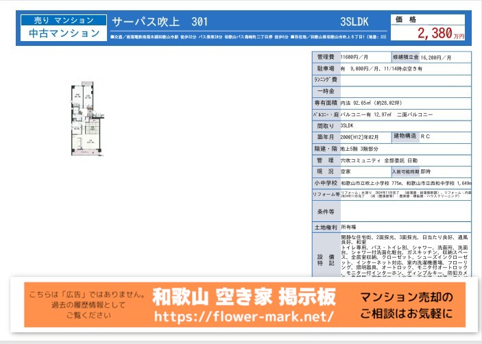 2024-08-29:3F 92.65㎡ 3LDK 20万円値下げしました。