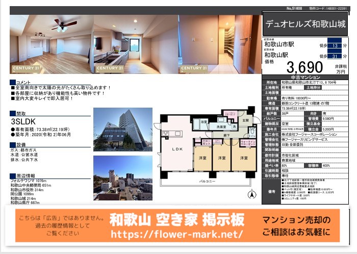 2025-03-25 | 7F 73.38 | 3LDK | 3,690 |