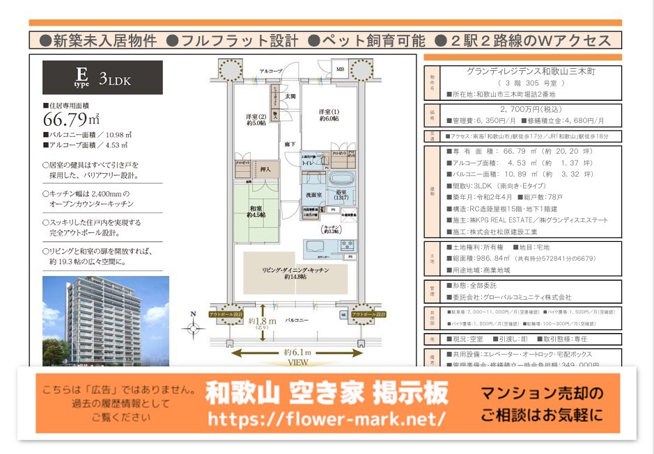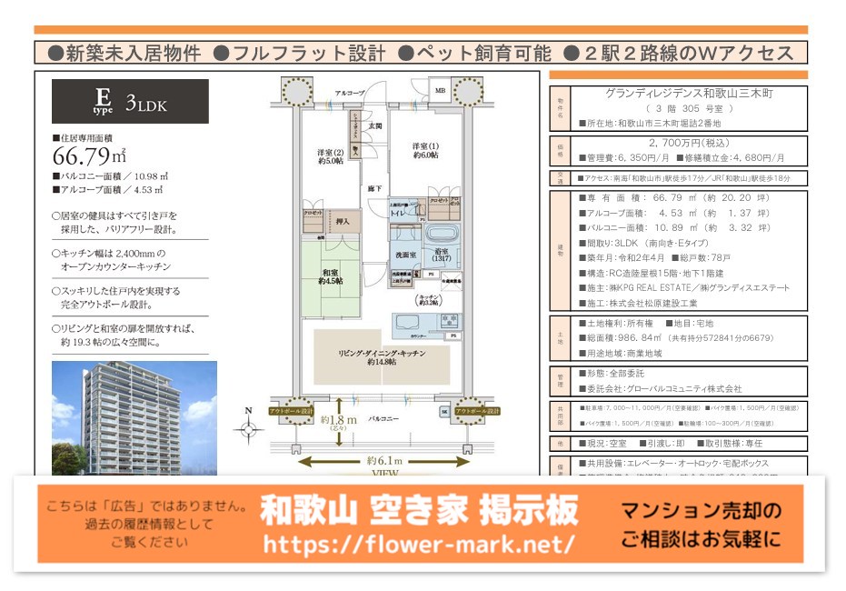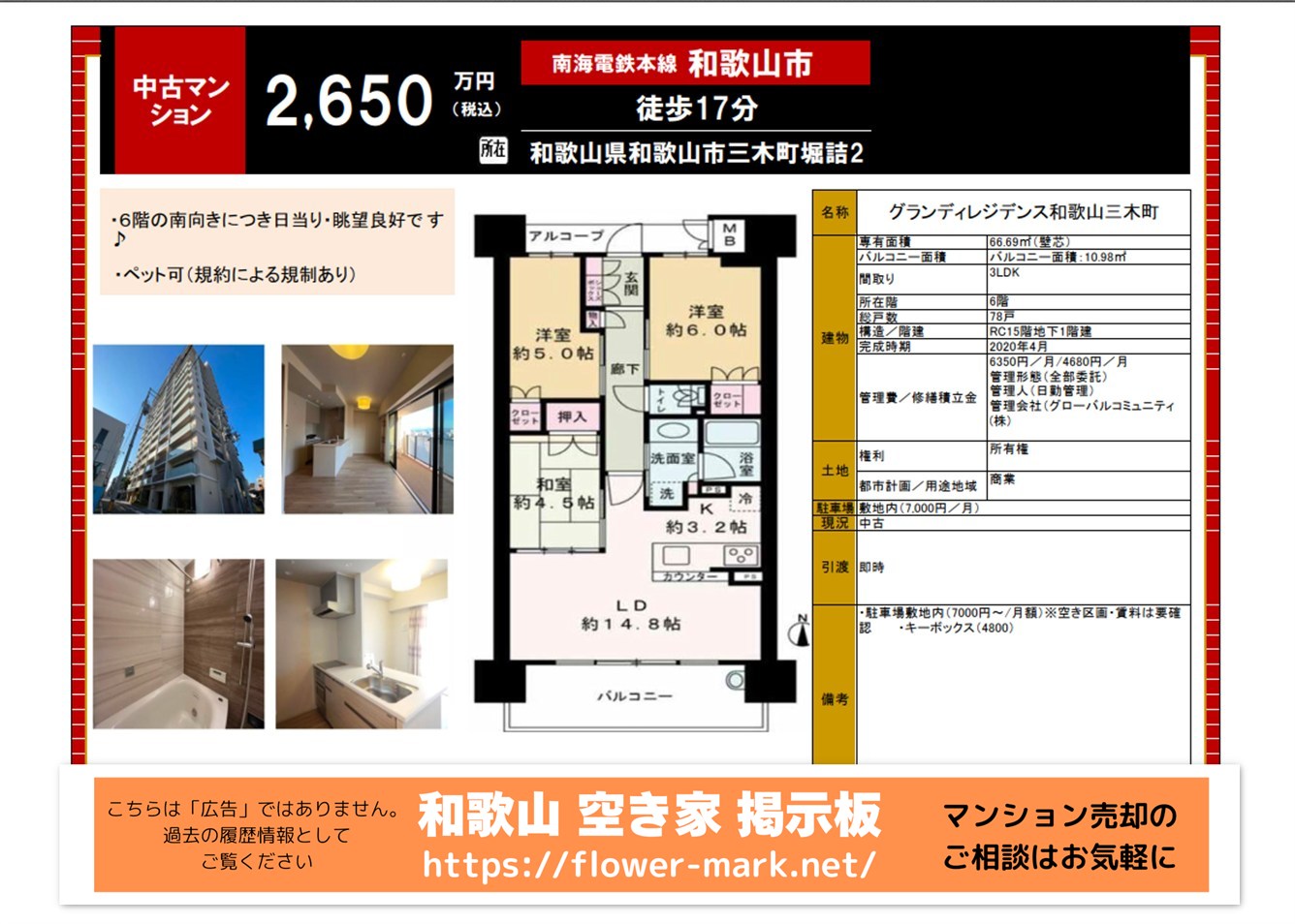| 2024-03-05 | 6F 66.79 | 3LDK | 3,050 |