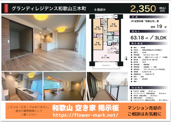 | 2026-02-07 | 6F 63.18 | 3LDK | 2,350 |