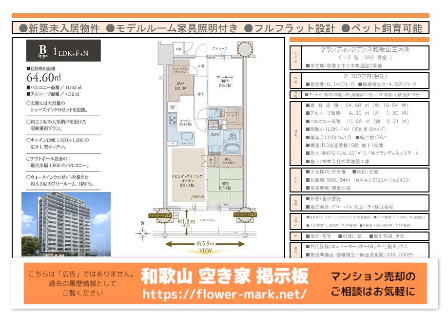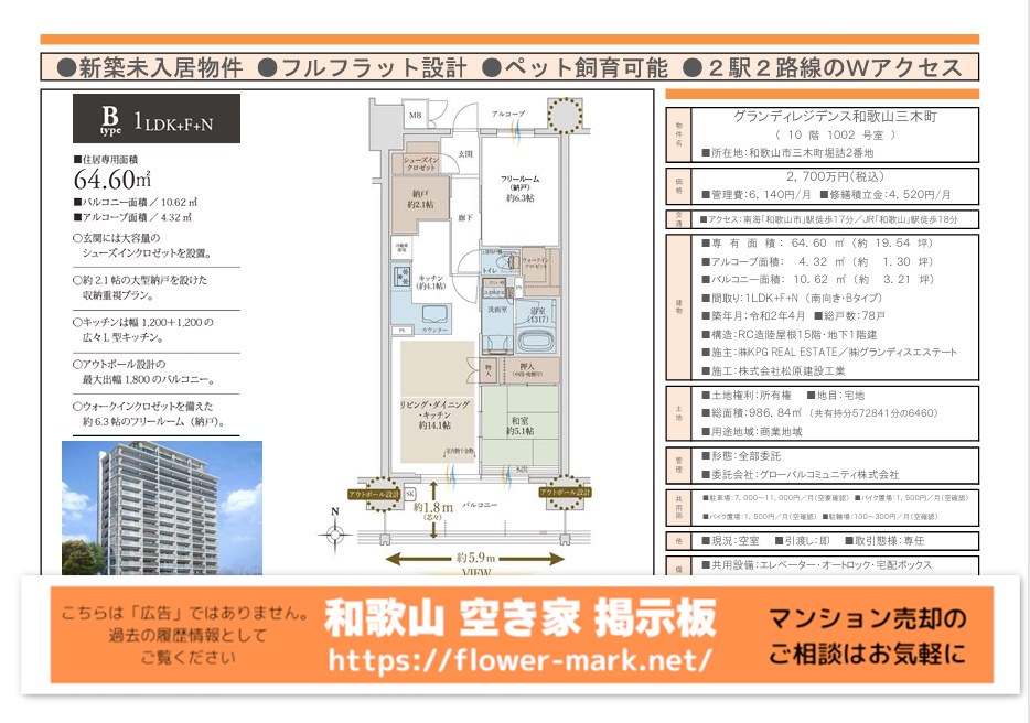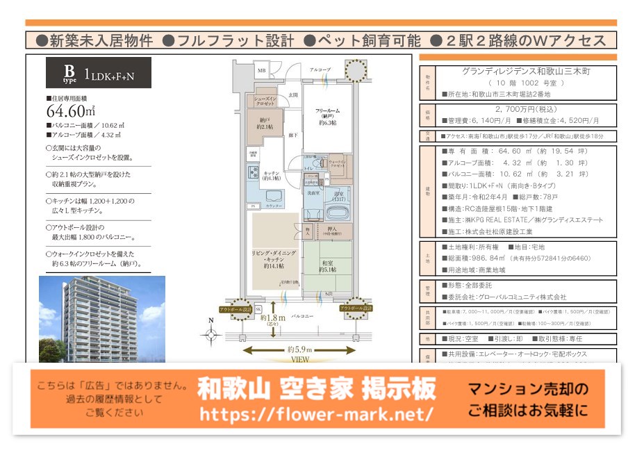 | 2025-06-07 | 10F 64.6 | 1LDKS | 2,700 |