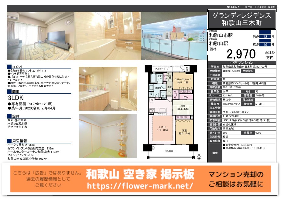 | 2024-03-27 | 7F 70.2 | 3LDK | 3,080 |