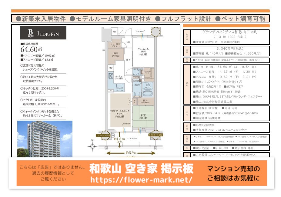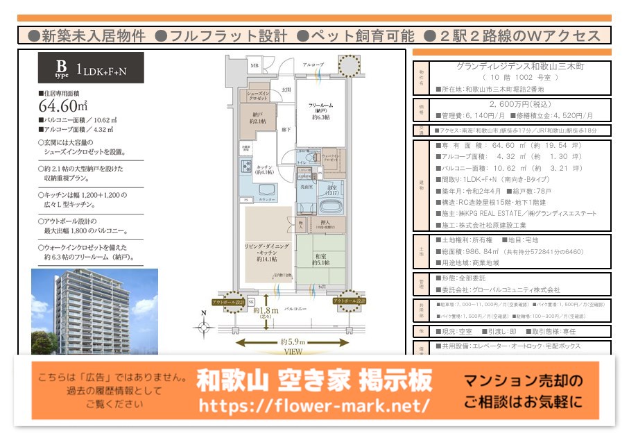 | 2025-10-23 | 10F 64.6 | 1LDKS | 2,600 |