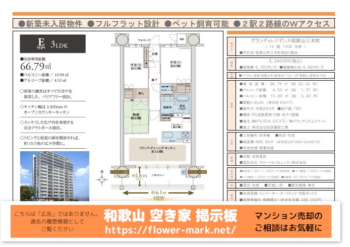 | 2025-03-31 | 14F 66.79 | 3LDK | 3,240 |
